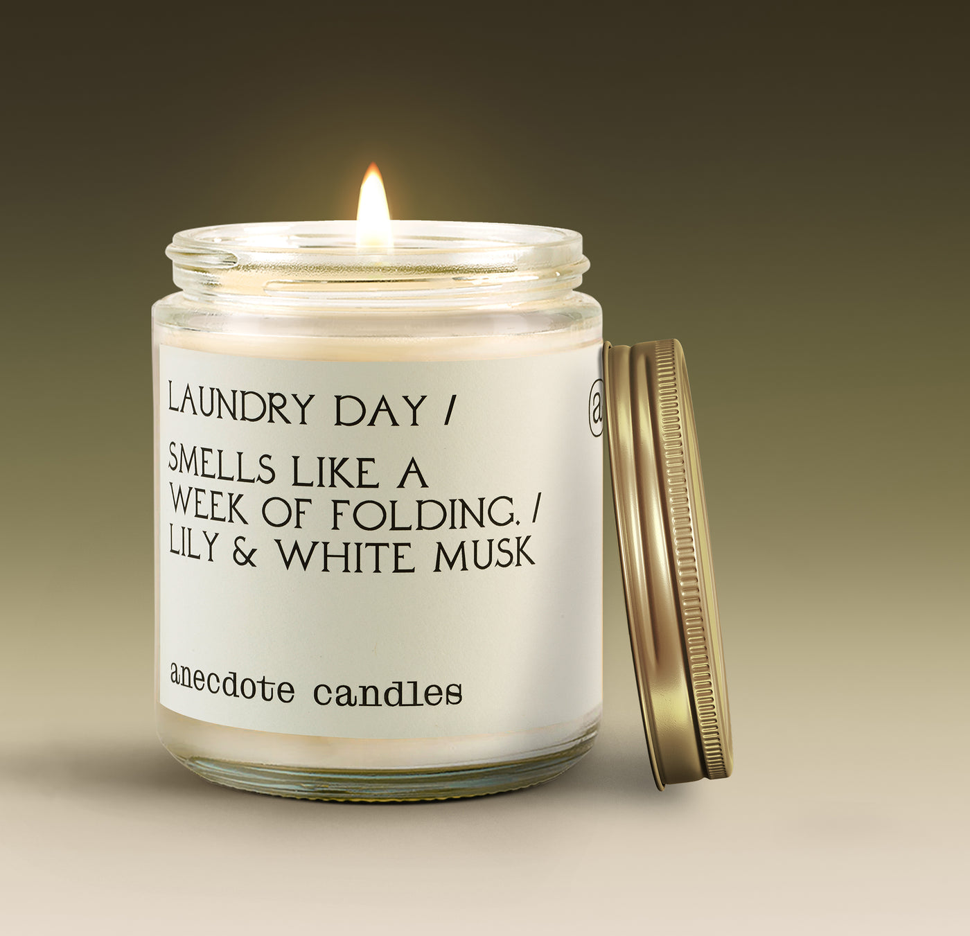 This was our first accidental candle, inspired by the lingering clean laundry smell after a day of washing and a week of folding. We posted something similar on Instagram and got a ton of website hits. Sure beats dirty laundry smell.