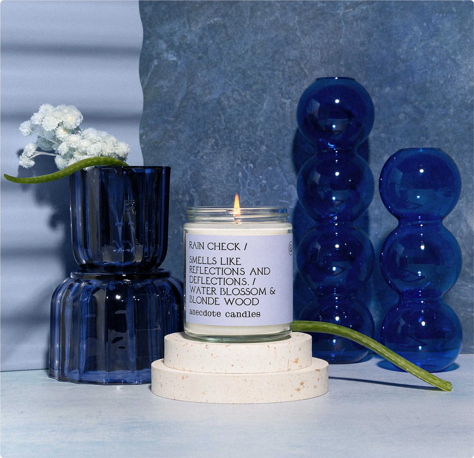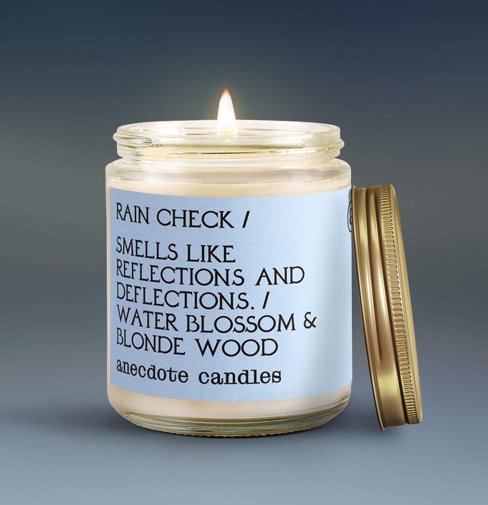 Whether your plans were canceled or you planned on canceling, burn this candle when you want a nice indoor retreat. A soft mist of lotus, petitgrain, and thermal waters float above a dewey medley of agave and violet mist. A fresh base of cyclamen and musky palm lingers after the rain.