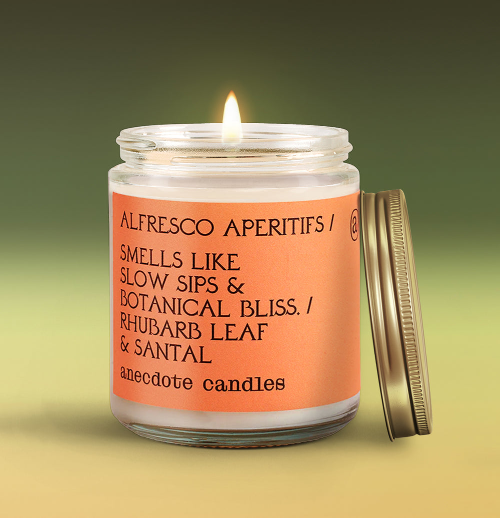 Just like the beverage, this candle’s bold botanical profile can keep you company from sunrise to sunset. Top notes of tart rhubarb leaf and zesty grapefruit make a bold entrance; while a sweet blend of quince, jasmine, and acerola fruit inspires you to slow down and savor the moment. Base notes of grey birch, santal, and raw amber capture the earthy elegance of outdoor dining and bring balance to the sweet and zesty flavors.