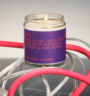 This candle is a sweet escape if you’re in need of a reboot. Wild cherries and candied apples give the instant sugar rush, while strawberries and sugared petals layer in sweet distractions. Underneath it all, whipped vanilla, crushed pistachio, and pink peppercorn linger like the quiet reset you didn’t know you needed.