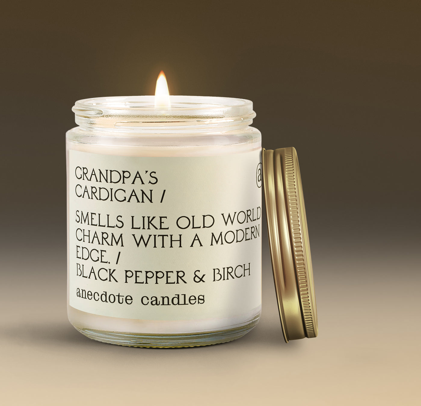 A new take on an old classic, Grandpa’s Cardigan is a scent of contrasts. Smoky birch notes are layered with spicy scents of black pepper and cardamom. Hints of mandarin and jasmine add a soft finish to the smoke and spice.