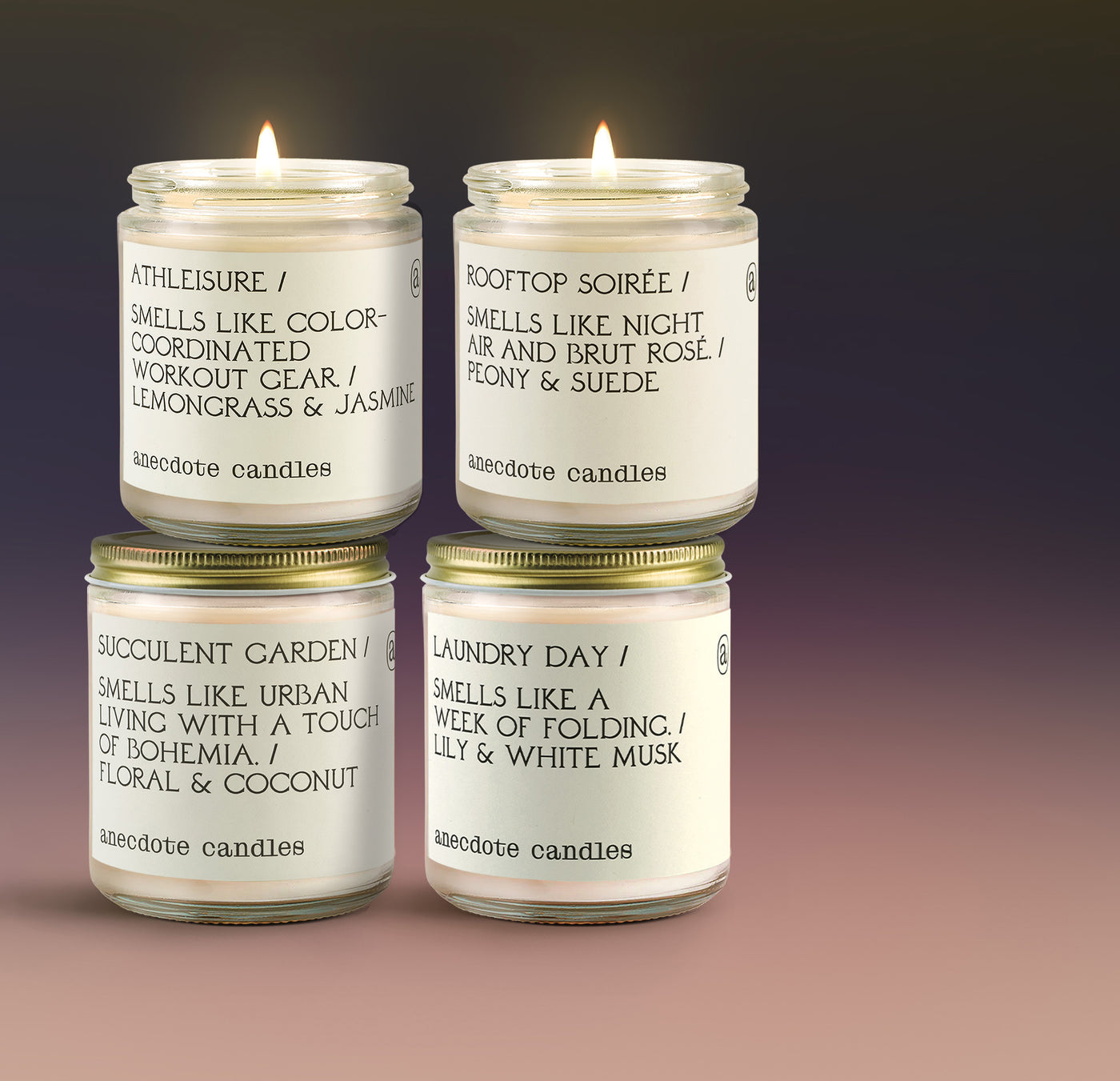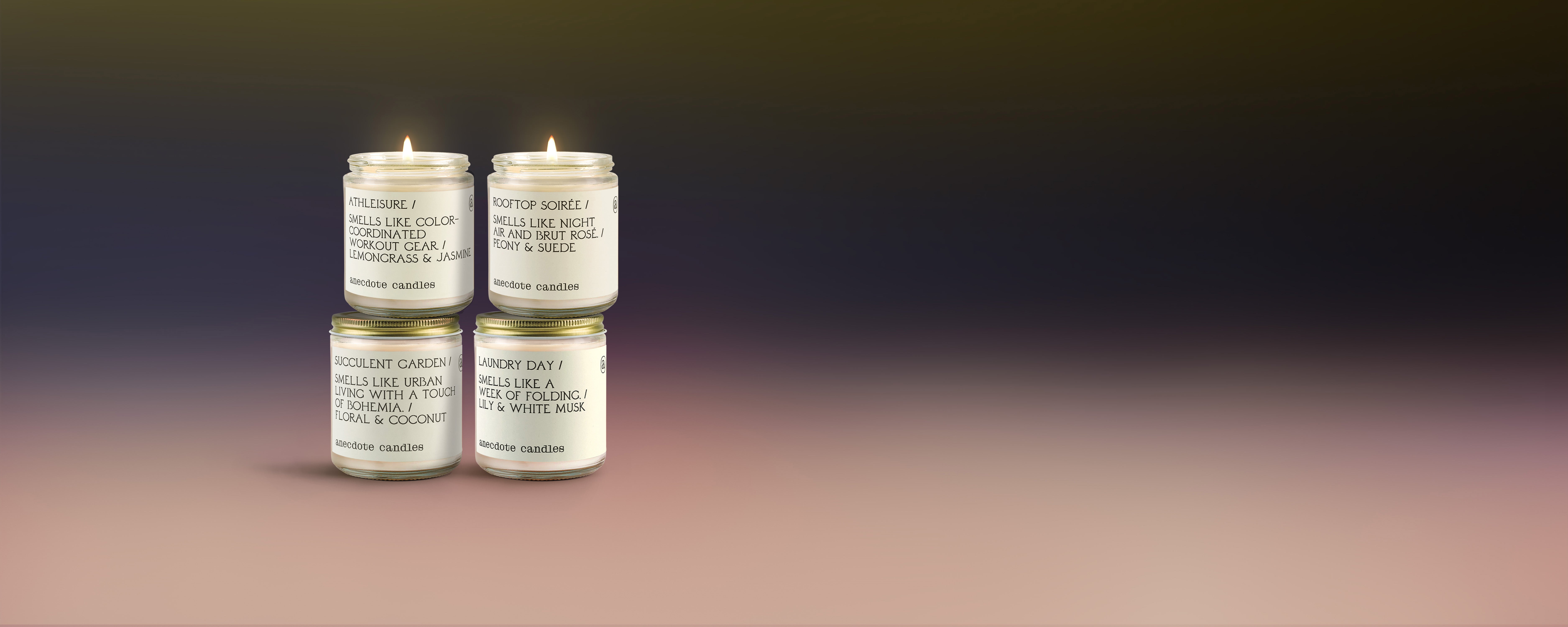 Lemongrass & Jasmine - Just like your yoga practice, Athleisure is calm and balanced, blending notes of lemongrass and black currant. Hints of patchouli and sugar cane round out the scent for added tranquility.