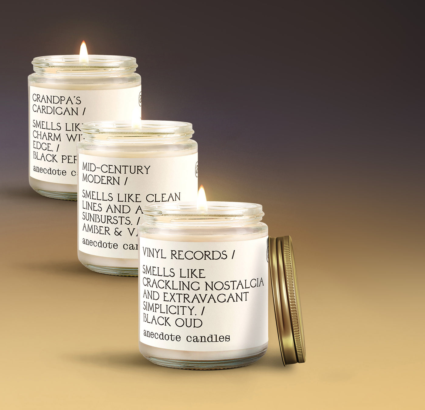 Elegant, edgy, and indie, just like that one cool person you know. This bundle features three of our standard glass jars: Mid-Century Modern, Vinyl Records, and Grandpa's Cardigan. Bundle and save when you buy all three.